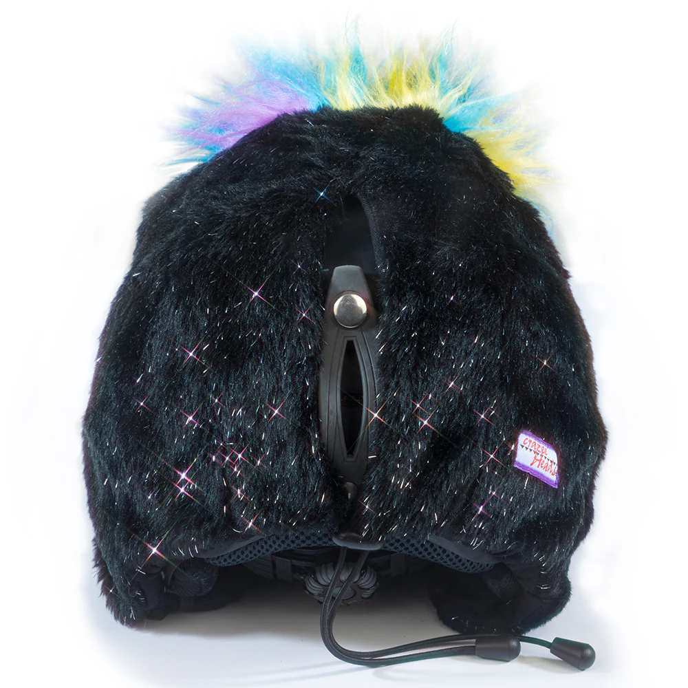 Edwin The Penguin Ski helmet cover is a charmer with his sparkling black fur down to his embroidered red tie. He has multicolored hair that is soft and fluffy. He likes chocolate milkshakes and cherry flavored jelly beans the best!